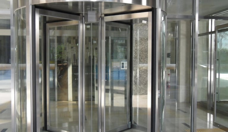 أعمال الأبواب بجميع أنواعها (الدوارة، المنزلقة، العادية، الأوتوماتيكية، وأبواب الأمان)